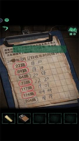 5、在门旁边的椅子上找到时刻表,把相关信息正确圈出来后,就能顺利打开门。