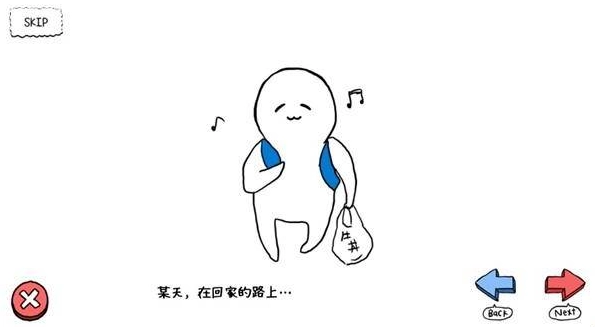 2、可以点击右下角的红色箭头来推进剧情,也能点击左上角的SKIP按钮直接跳过剧情
