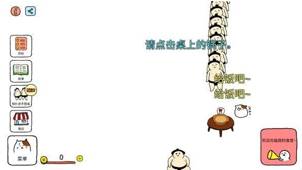 3、点击桌子上的锅,给排队的相扑选手们派饭