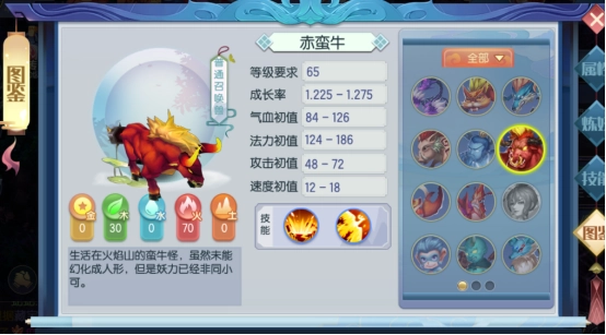 PS:1.赤蛮牛是普通召唤兽,天生就有法术群攻和法术单攻技能。和山神比起来,它的速度会慢一些,但攻击和气血方面有明显提升。玩家到65级时,建议去抓一只,这确实是非常值得推荐的宝宝。
