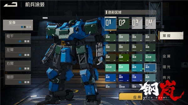 施密特色彩发布的第三版色彩标准里,总共划分出四大系列,分别是施密特常规系列(SCHMIDTClassic)、施密特金属系列(SCHMIDTMetal)、施密特哑光系列(SCHMIDTMatte)以及施密特亮光系列(SCHMIDTGloosy)。不同的机兵生产厂商与各类武装组织,对这四大系列有着各自不同的偏好和倾向。对此,施密特色彩会从色卡、颜色规范、涂装材料标准等多个维度,为他们提供全面的服务支持。
