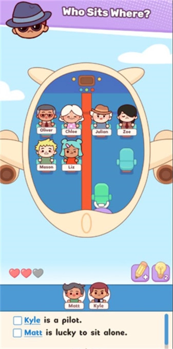 1、在场景中为不同角色安排座位,依据关卡下方的提示,将各个角色放置到对应的位置上。