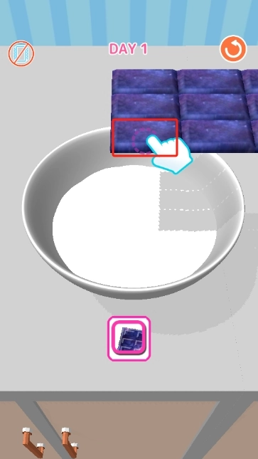 1、进入,我们点击将巧克力掰入牛奶里面。