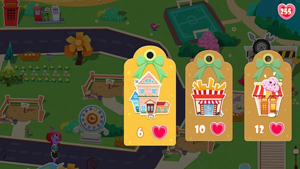 3、玩家可通过完成任务获取爱心,这些爱心能用来兑换精美的建筑,之后将其放置在小镇的空地上。