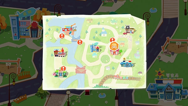 3、轻轻拖动糖糖,让它开始在街道上漫步吧!哎呀,是不是迷路了?别担心,打开右上角的“地图”就能定位啦。