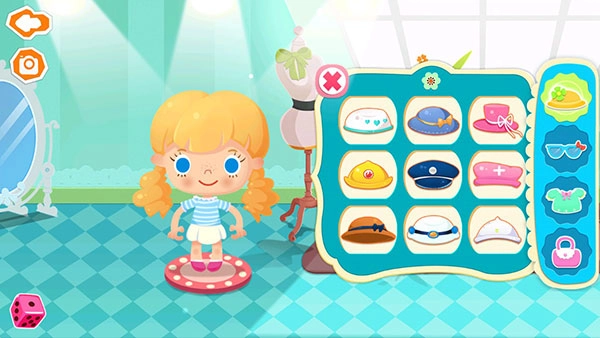 1、玩家可点击左侧的“衣服”气泡,为角色糖糖更换精美的套装,打造出千变万化的造型。