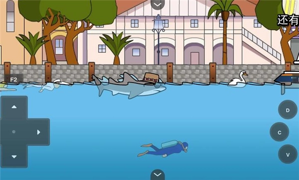操作采用虚拟摇杆与按键结合的方式,鲨鱼的移动方向由摇杆控制,撕咬动作则通过点击按键触发。在破坏过程中,界面会实时显示目标与鲨鱼的距离数值,以帮助玩家判断攻击时机。每当一个目标被破坏后,鲨鱼就能获得能量点数,这些点数可用于解锁新海域,或是提升鲨鱼的撕咬速度、移动效率等基础能力。