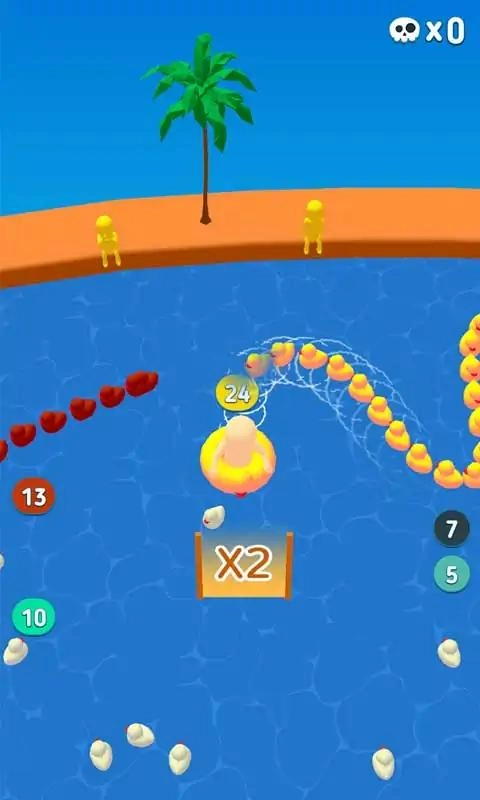 2、你是泳池里小黄鸭们的带头“鸭”,要带领你的小黄鸭伙伴们去撞击其他对手。