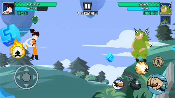 1、沿用经典火柴人系列的画风,融合Q版卡通风格,采用2D横版操作模式,整体画面简约却不失丰富细节。