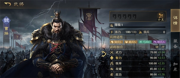 3、可通过提升武将的等级与星级,搭配各类技能、宝物,以及激活宿命效果等途径,来增强武将的实力。