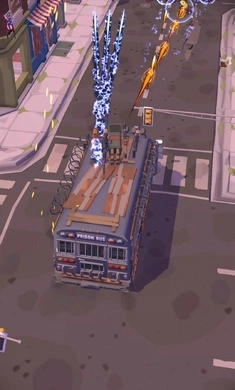 1、形形色色的丧尸敌人会持续发起攻击,玩家的目标是尽可能长时间地存活下去。玩家将操控公共交通坦克,摆脱身后丧尸的追逐,收集到的材料可用于升级坦克,增强其武器威力与装甲防护能力。