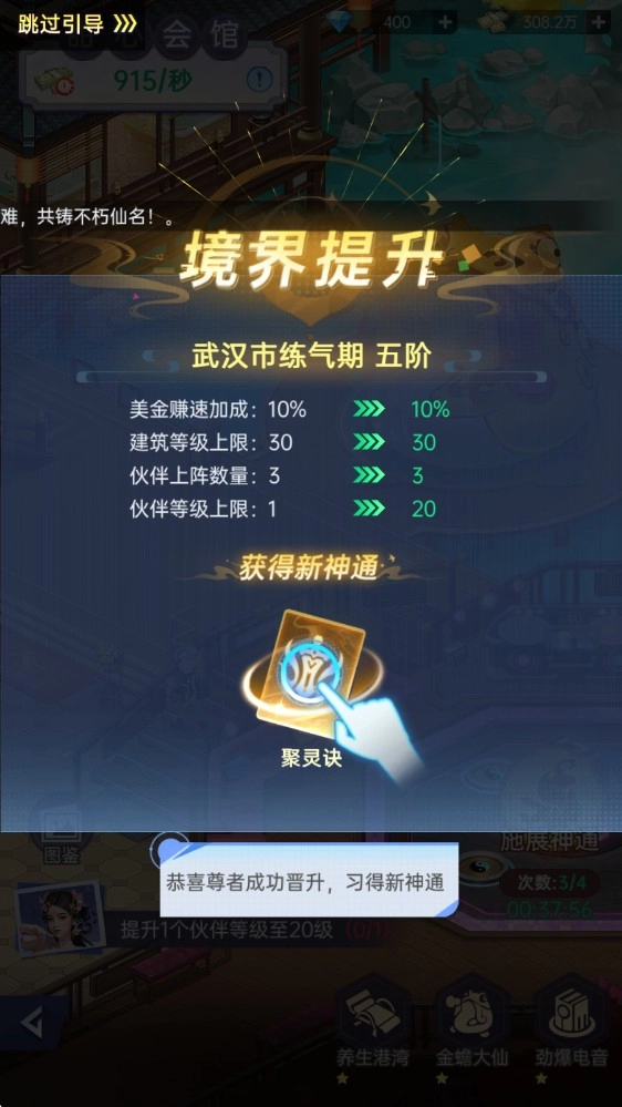 5、通过经营能够持续提升自身的修仙等级,开启更多功能。