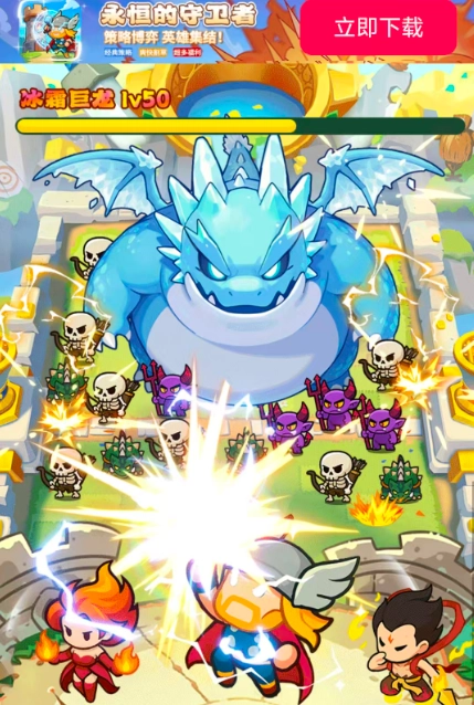 2、冰冻魔法、全屏炸弹、包扎城墙、满血复活这类强大技能,再加上直接有效的“无敌”技能,能让你瞬间成为敌人的梦魇。