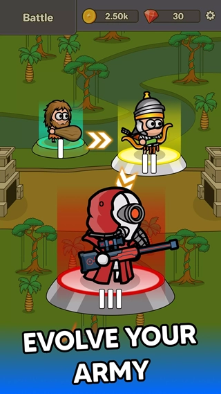 1.玩家将从石器时代的洞穴人起步,逐步进化为古埃及的士兵、斯巴达勇士,最终迈入现代战争时代。