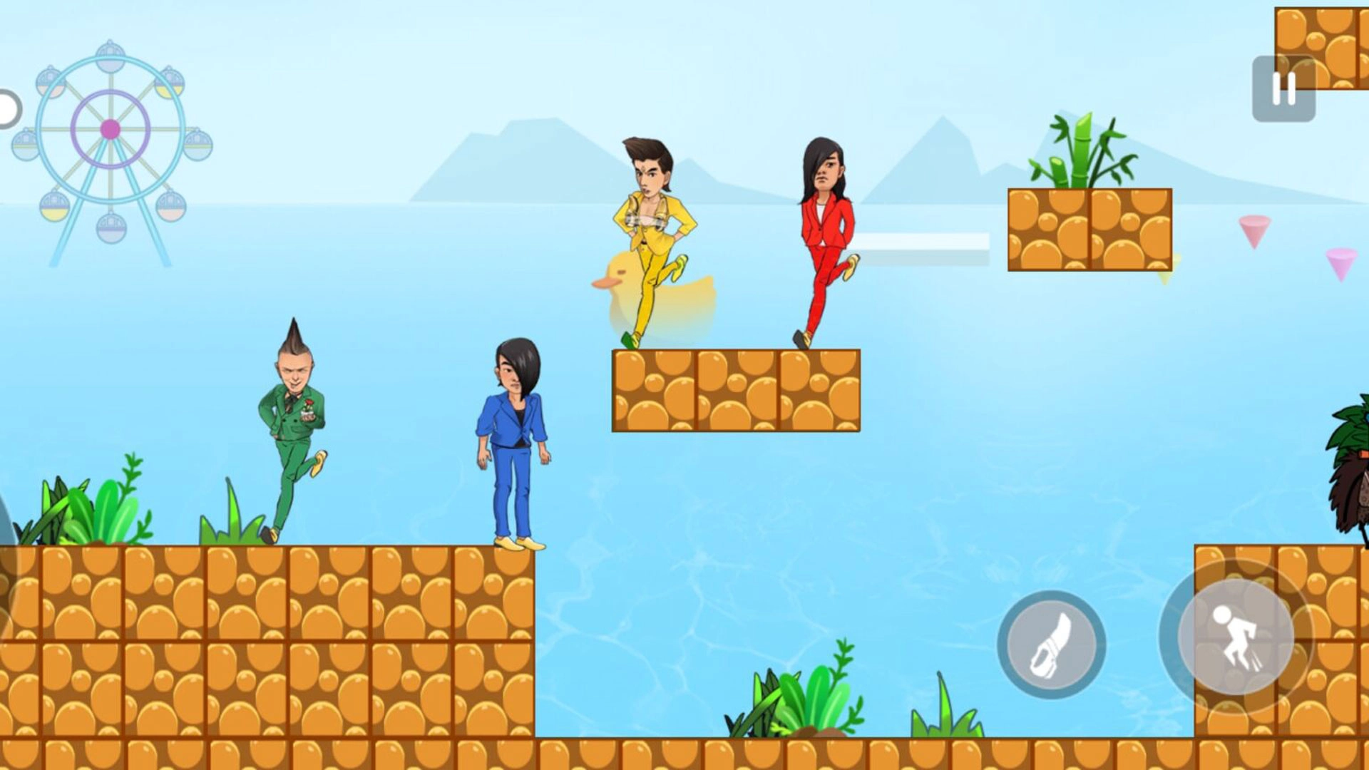 4.用左边的摇杆操控角色移动,右边的按键负责攻击与跳跃。要灵活地通过跳跃来前进,跨越重重障碍,这样才能顺利到达终点!