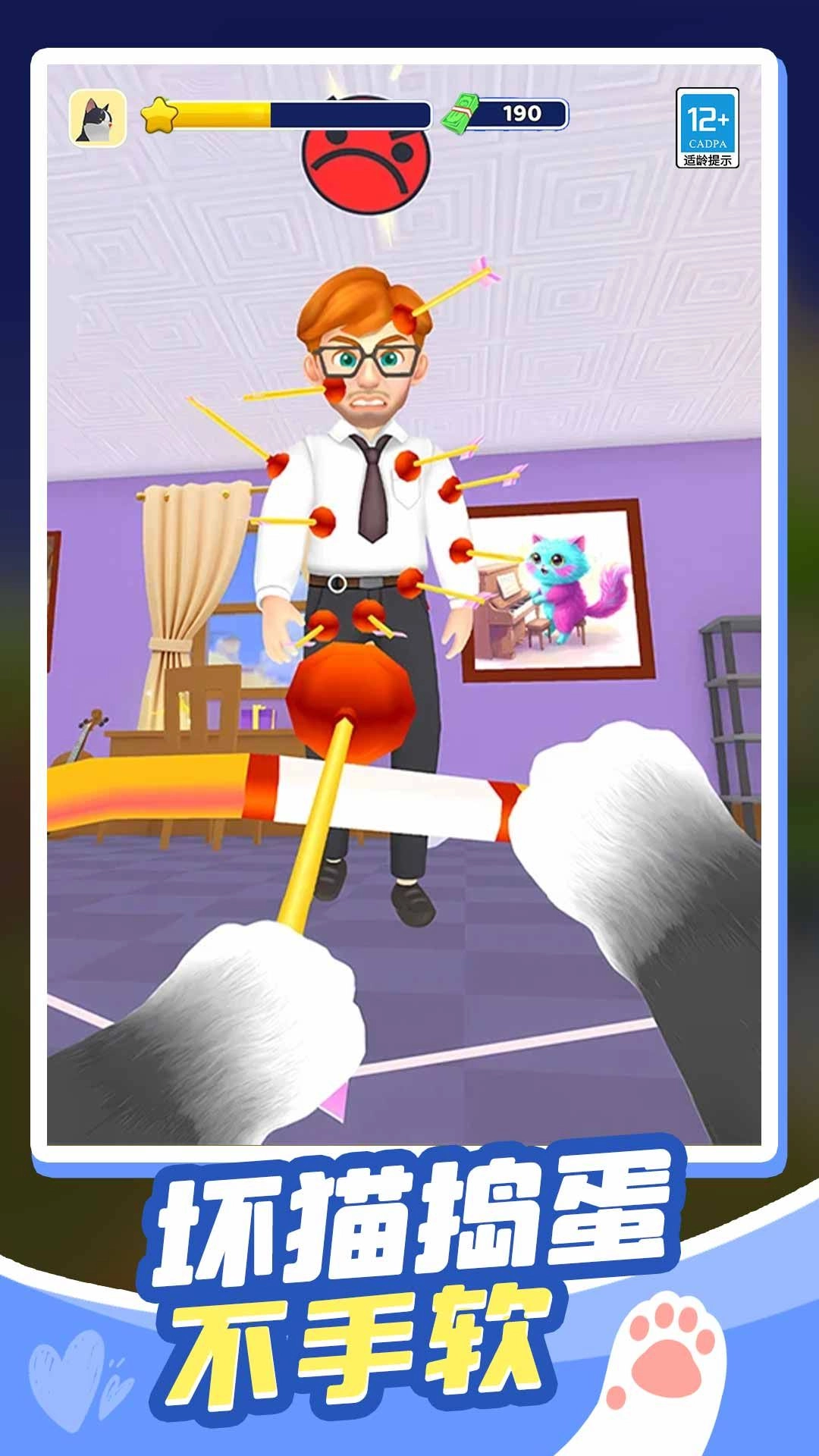 3、围绕“坏猫捣蛋”这一核心风格展开,整体营造出轻松诙谐的氛围,能够帮助玩家有效缓解压力,十分适合在休闲时段体验游玩。