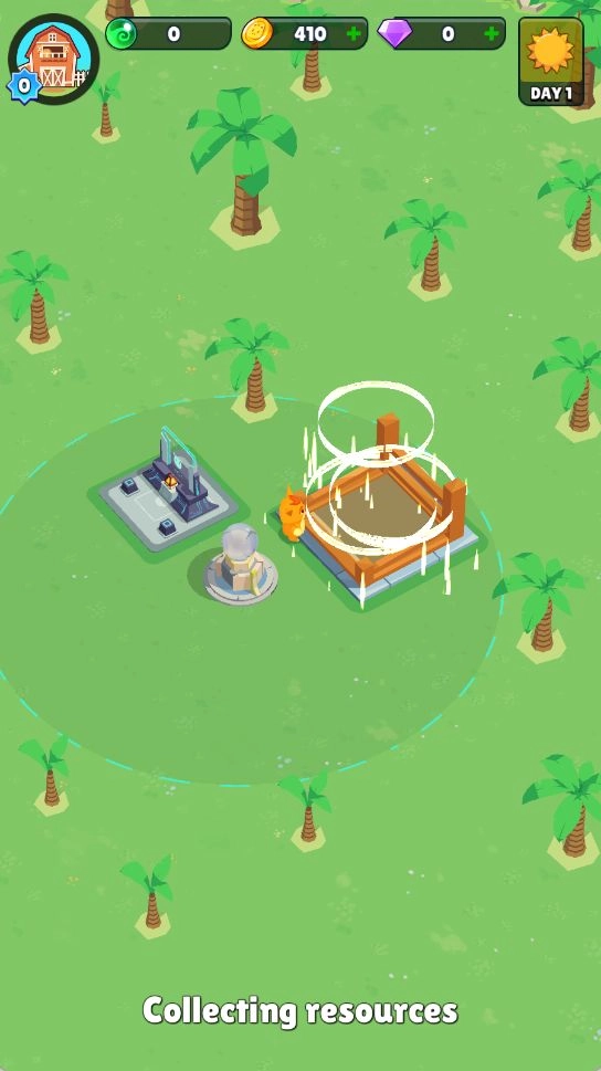 1、对岛屿区域进行规划,收集木材、矿物等各类资源,建造并升级小怪的居所及其配套设施,解锁更多功能,不断优化生存环境。