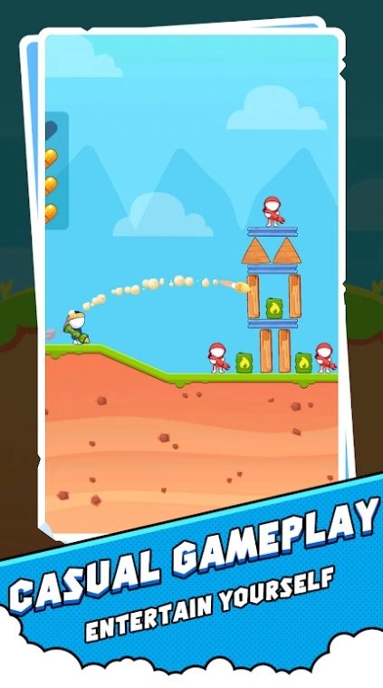 《炮兵射击大师》是一款趣味十足的休闲射击游戏。在游戏里,玩家需要控制炮弹的发射角度与力度,去击败关卡中的所有敌人。你的任务就是把指定区域的目标全部炸碎,而射击的角度和力度是取胜的关键。每一次闯关都是对自身实力的挑战,喜欢射击闯关类游戏的小伙伴,感兴趣的话可千万别错过,快来和我一起开启闯关冒险之旅吧!
