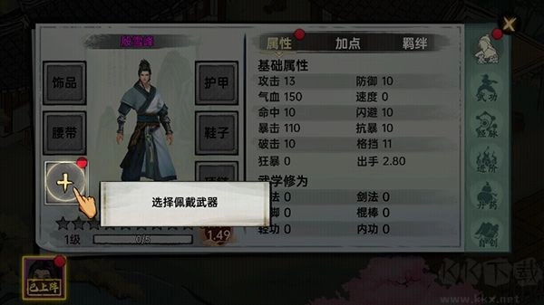修炼结束后,你可以挑选武器佩戴好,之后就能出关去挑战了。