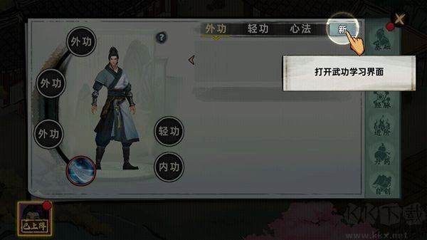 打开武功学习界面,在里面完成修炼