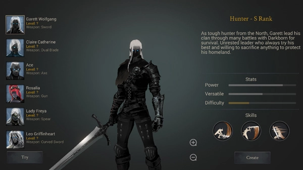 2、点击左下角Try按钮可以进行角色试用。