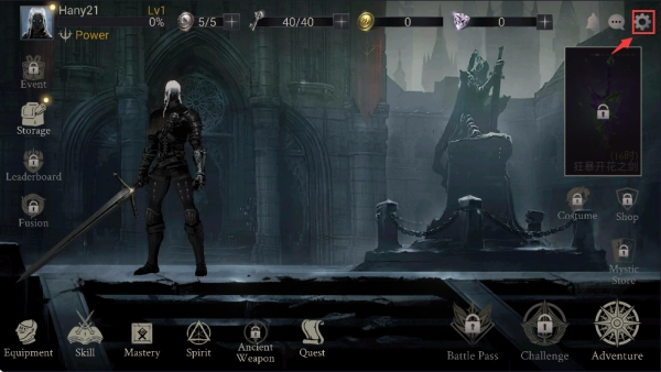 1、进入首页,点击屏幕右上角齿轮设置按钮。
