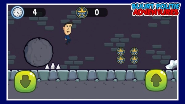 能够进行运行、滑动、跳跃等操作,避开锯片,收集警徽以解锁更多警员。