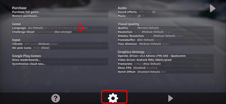 1、启动雪山滑雪大冒险2后,游戏初始语言为英文。若需切换至中文,可进入设置界面,找到“language”选项,点击当前显示的“en”并选择“zh”即可完成语言调整。