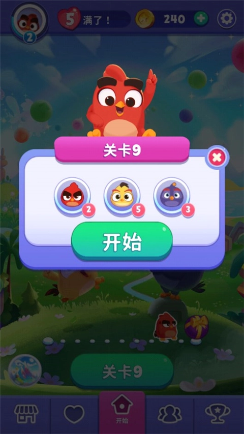 1、在本站打开《愤怒的小鸟梦幻爆破》后,玩家需通过闯关模式逐步推进游戏进程,点击“开始”按钮即可进入游戏。