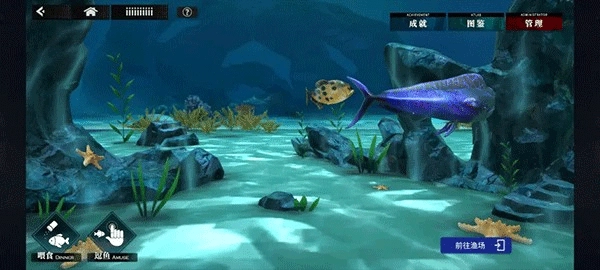 2、配备鱼竿道具,对准水面抛投钓线,耐心等候鱼儿咬钩,再通过操作与它展开博弈。