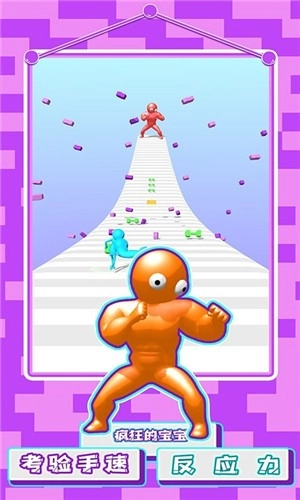 2、在前进的路上收集哑铃等各类道具,提升你的属性与战力,更轻松地抵达终点。