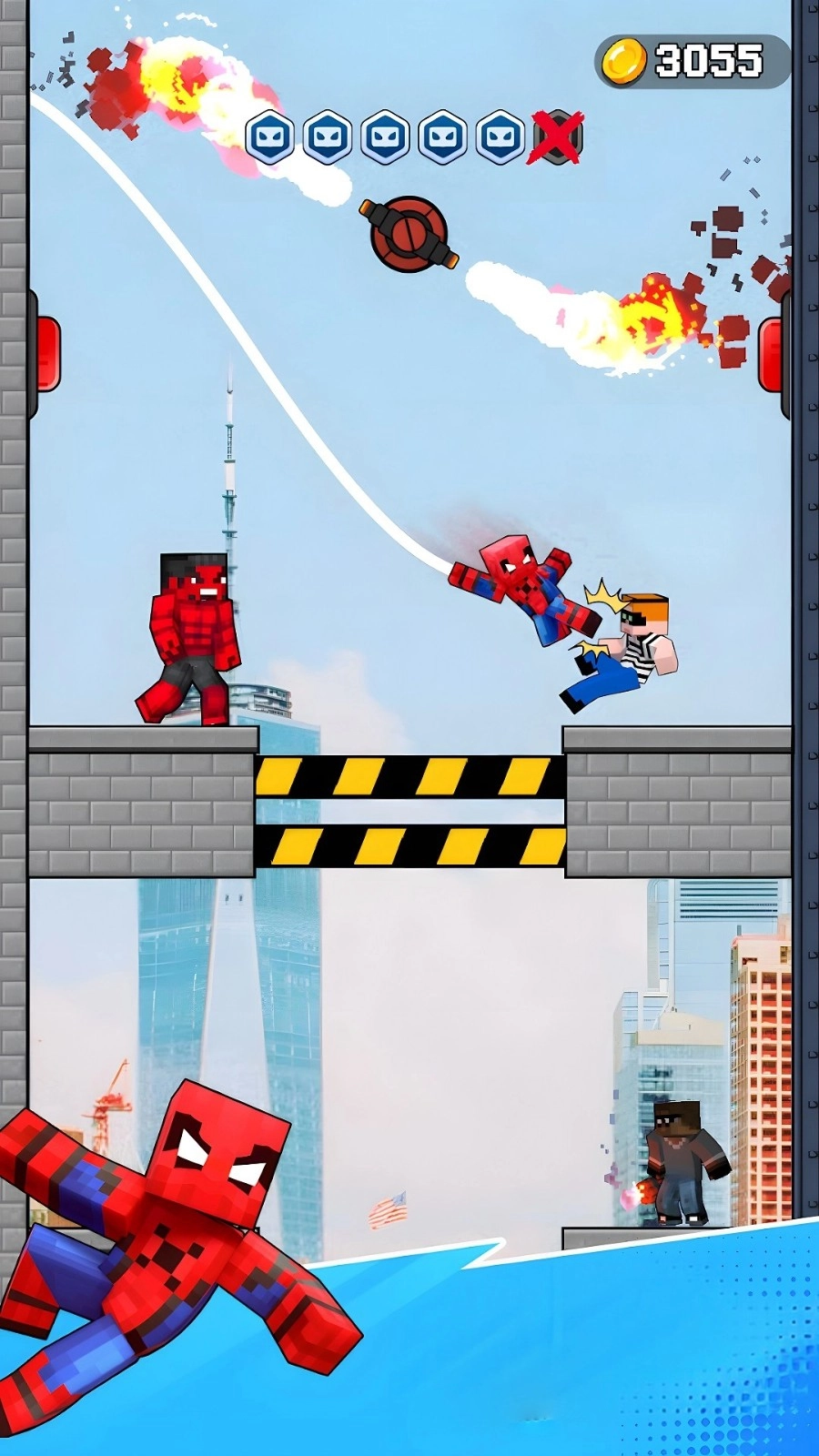 1、拖动屏幕可操控蛛丝发射方向,帮助角色快速抵达目标区域,以便迅速找到合适的攻击角度。