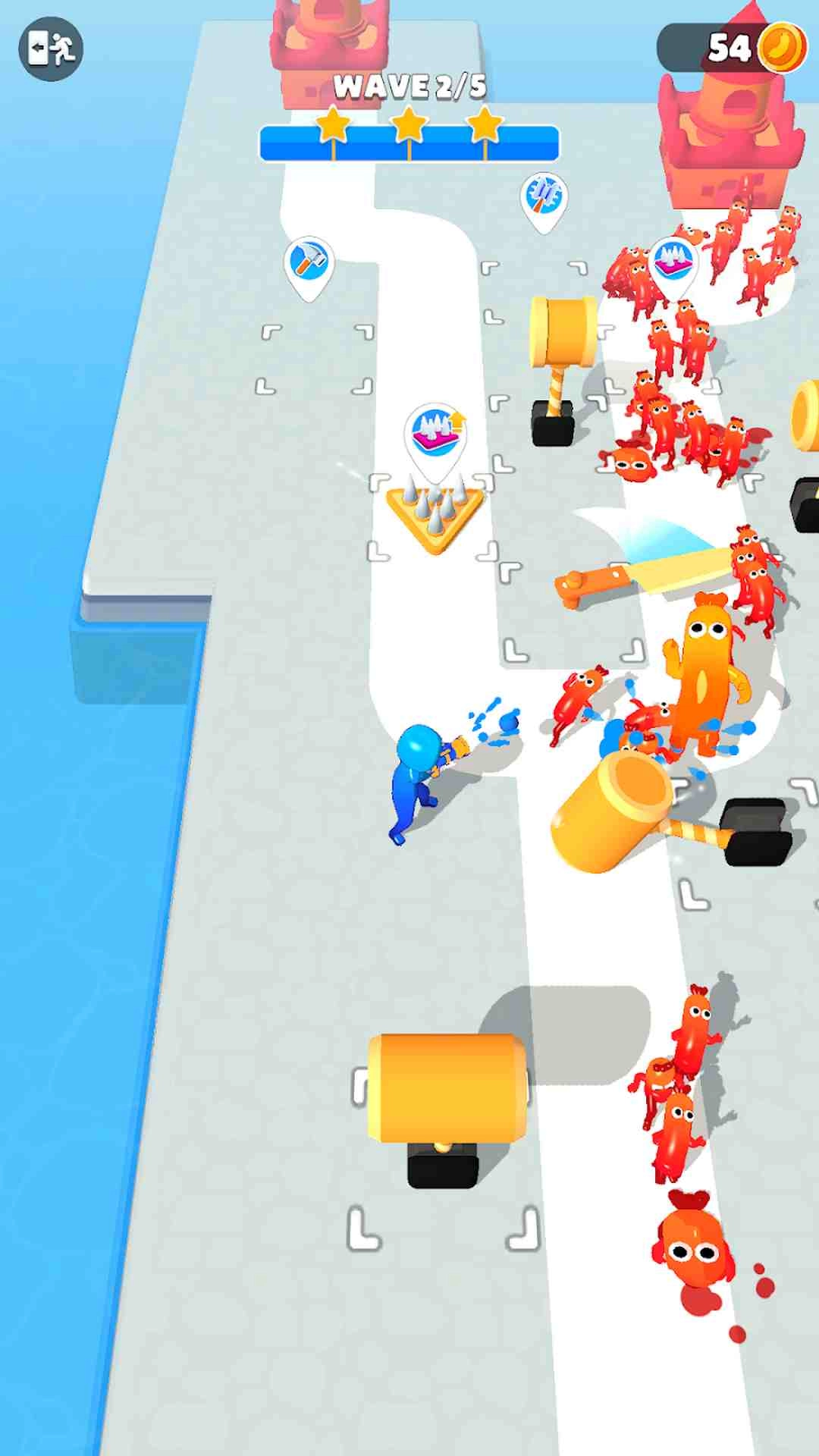 2、抵御一波波试图逼近你基地的入侵者。可以使用锤子、旋转刀刃和危险的尖刺等武器。