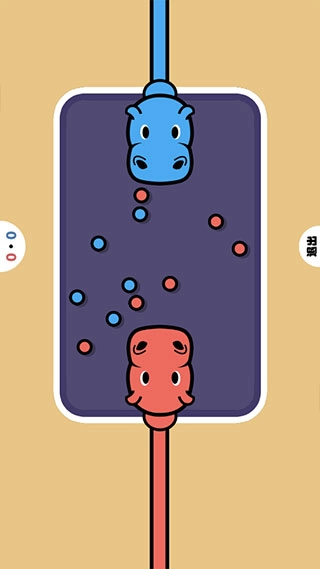 通过点击操作河马去吃掉小球,吃到和自己颜色相同的小球可获得2分,吃到对手颜色的小球则会扣除1分,率先积累到80分的一方获胜!