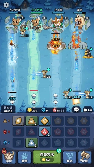 2、每次召唤出的咒术都是随机的,不同属性的咒术可供你自由组合搭配,从而完成各种各样的挑战。