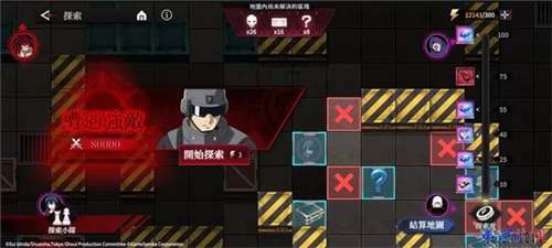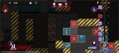 采用采格子的玩法,在探索过程中可能会遇到敌人、获得宝箱道具,或者触发特殊事件。遇到敌人时,有时会出现不击败该敌人就无法进入下一个区域的情况,而且在这个系统中,上阵的角色在探索结束前无法自动恢复生命值,所以这对玩家在策略性选择上阵角色方面的决策是很大的考验。