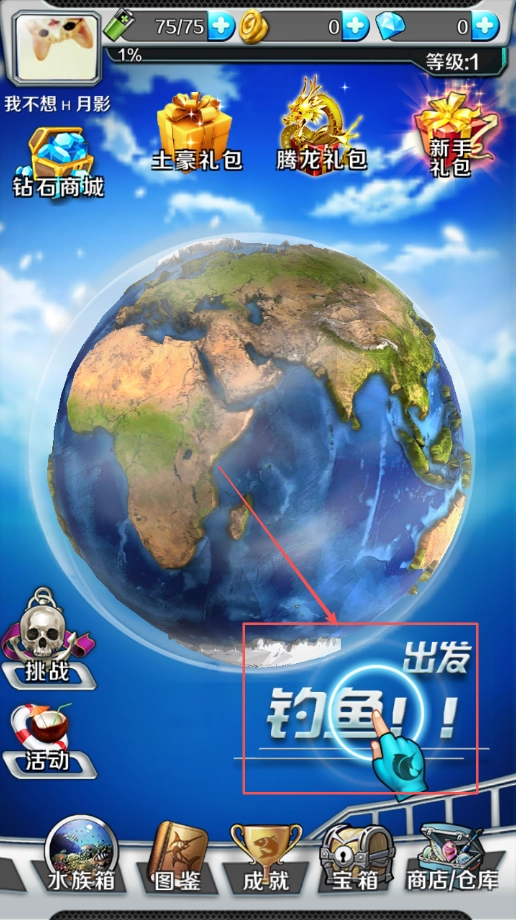 1、进入钓鱼选择界面,开启垂钓体验准备流程,熟悉操作界面及基本功能的布局设计特点。