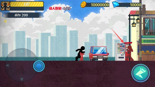 火柴人突击格斗是一款畅快的横版动作格斗游戏!玩家操控简约的火柴人,在横版战场上施展拳脚,连招流畅且打击感十足。不仅能切换冷兵器进行劈砍,还能使用热武器射击,灵活应对小兵、装甲和飞行敌人。游戏包含冒险、生存、酷跑等多种模式,关卡难度逐步提升,玩家可以解锁新角色、强化装备,成长体验丰富。拳拳到肉的反馈和血溅特效让人热血沸腾,无论是新手还是高手都能从中找到乐趣,快来体验吧!