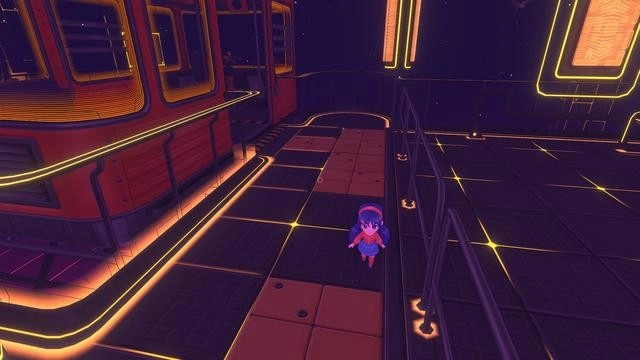 玩家2在“超越世界”章节的环形走廊中,一直向左走,直到发现地上的盒子。
