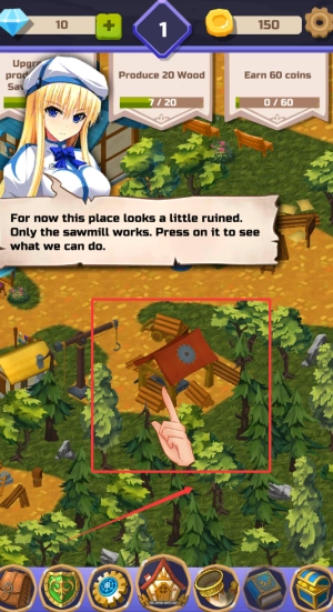 1、进入后,首要任务是跟着剧情提示修复小镇的基础建筑,一步步解锁更多功能区域,同时在这个过程中认识拥有不同能力的萌娘角色。