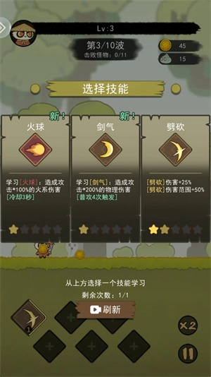 3、玩家提升等级后,能够挑选一项技能来增强自身实力,而且每次可供选择的技能均不相同。