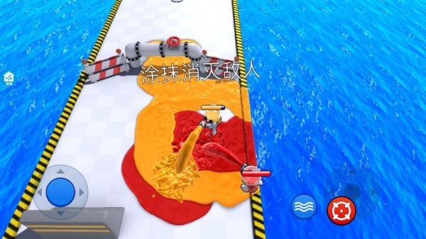 3、把高饱和度颜料作为核心视觉元素,可实现红、黄、蓝等基础色的混合,玩家泼出的油漆会实时覆盖在地形上。