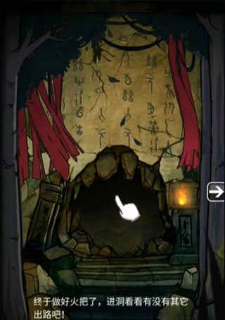 1、按照提示进入山洞后,点击墙上的火把框,就能把火把放置上去。