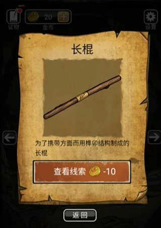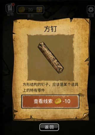 7、在墙上有九个洞的房间里,点击地上的棍子,把这些棍子拼接起来,再将之前从包里拿到的方钉放进棍子中间,就能得到一根长棍。