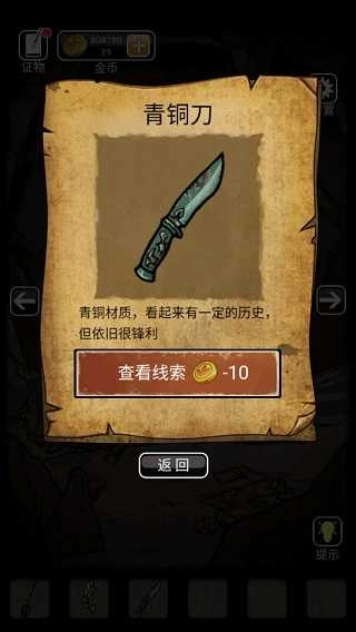 7、接下来,用火把点击洞上露出来的树枝,大概需要点击5次,树枝的出现位置是随机的,最后就能获得青铜刀。