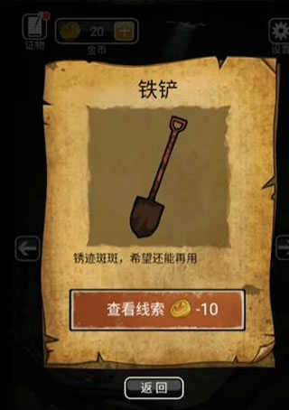 5、向右行走时在地上捡到铲子,随后回到有白色花的场景,用捡到的铲子把墙上的水壶凿取出来。