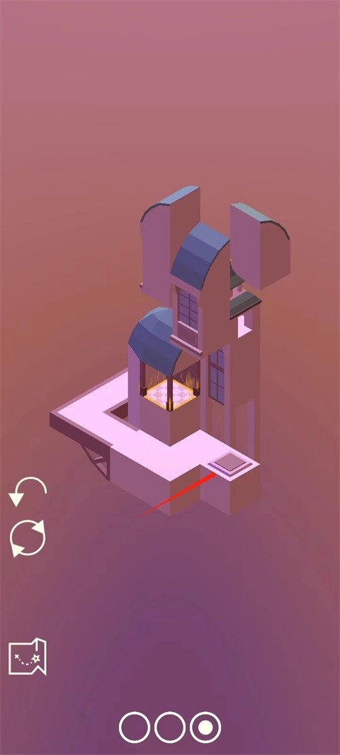 2、第一关难度较低,直接走到黄色方框里就行,当然也能通过滑动屏幕来调整视觉角度,或者点击下方的按钮切换视角。