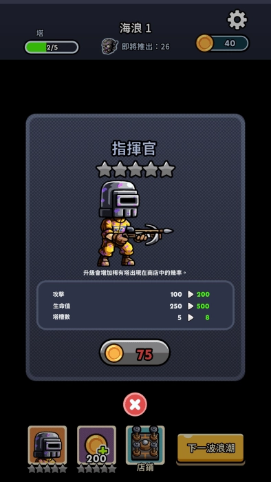 每一波的金币增加都能点击这个升级提升。