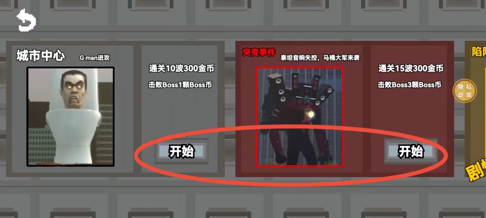 1、进入主界面后,选择塔防模式,所有关卡都能自由选择,你可以通过左右滑动来浏览不同关卡,点击想要挑战的关卡就能开始游戏啦。