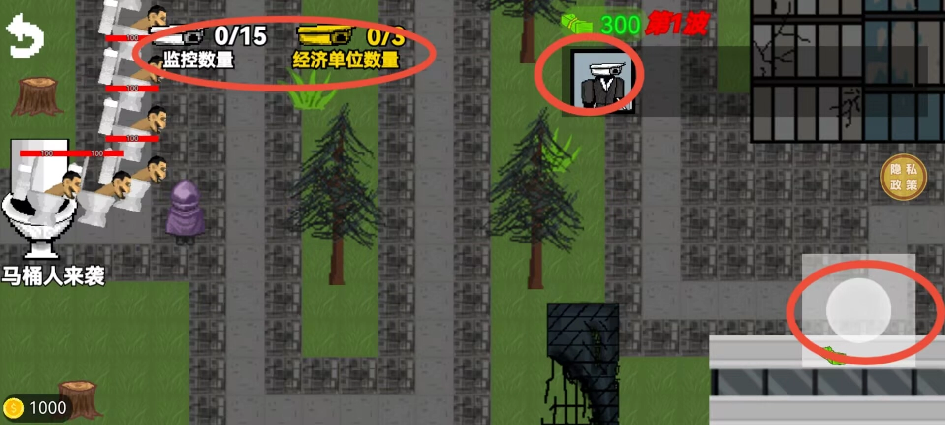 1、核心玩法为塔防。需在指定位置布置监控人等防御单位,以拦截敌人的进攻路径。防御单位在不同位置的部署情况,会对战斗效率产生影响。